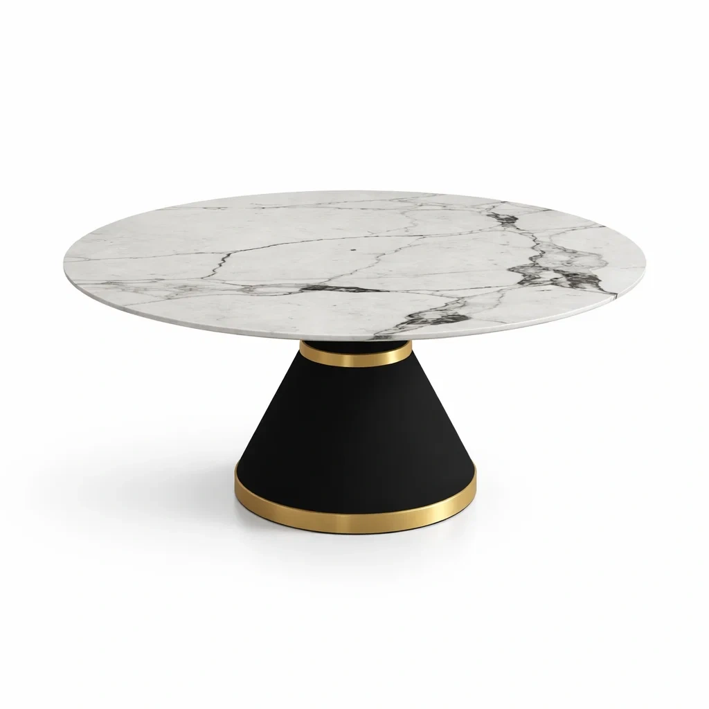 Table à manger ronde en marbre et métal noir doré